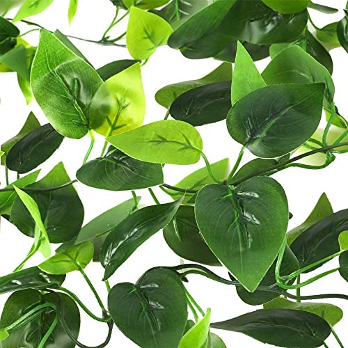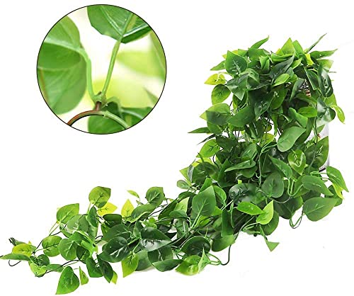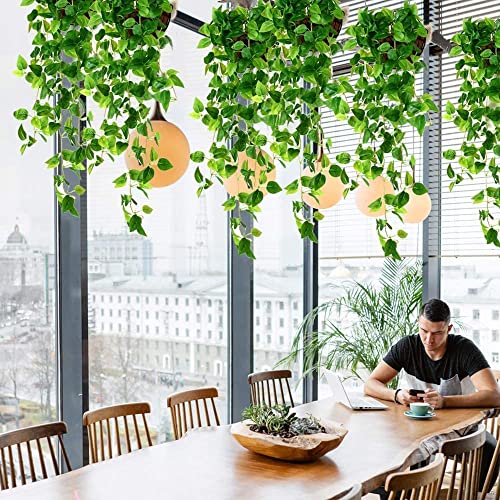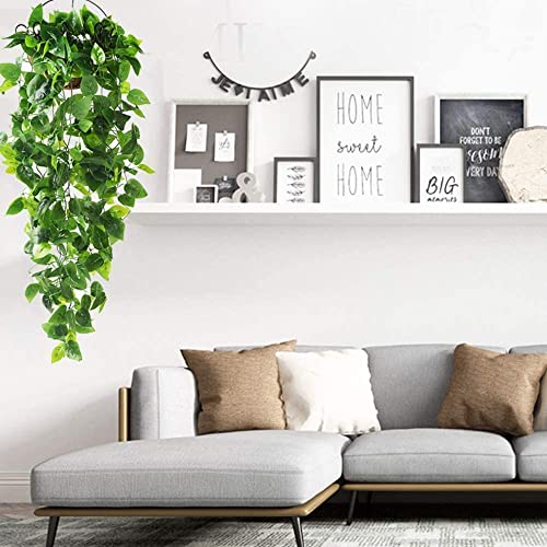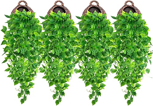 Warmy - Warmy 4PCS Hanging Plants Artificial Trailing Plants UV Resistant Artificial Hanging Plant Realistic Silk Hanging Vines Hanging Plant for Garden Wedding Hanging Basket Decoration (Scindapsus Leaves)