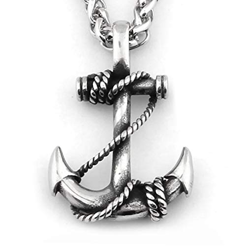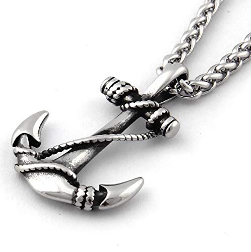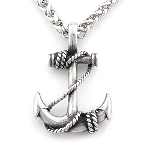 Warvik - قلادة بحلية مرساة من وارفيك للحماية من الحظ السعيد، مجوهرات من الستانلس ستيل للرجال والنساء، سلسلة قمح 20/28 انش