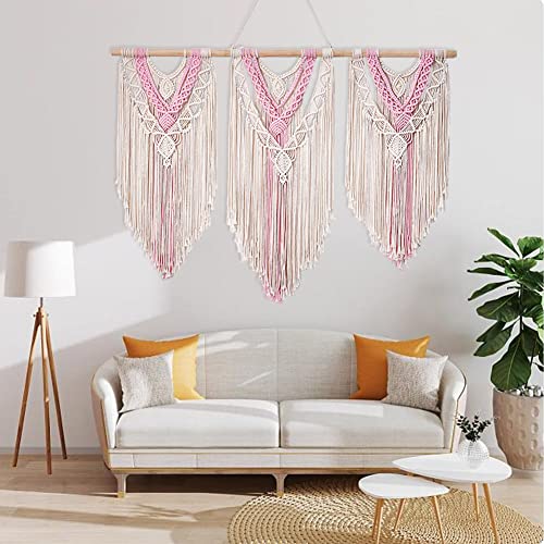 - 【Installing】 Easy to install. It’s three separate macrame, the rod is in three pieces and you just screw them together.