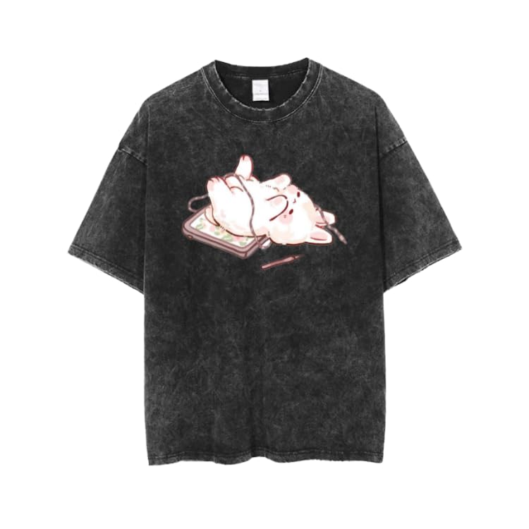 Generic - washed gray t-shirt bunny rabbit cute kawaii oversize 3