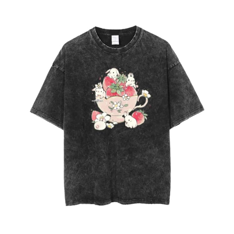 Generic - washed gray t-shirt bunny rabbit cute kawaii oversize 30