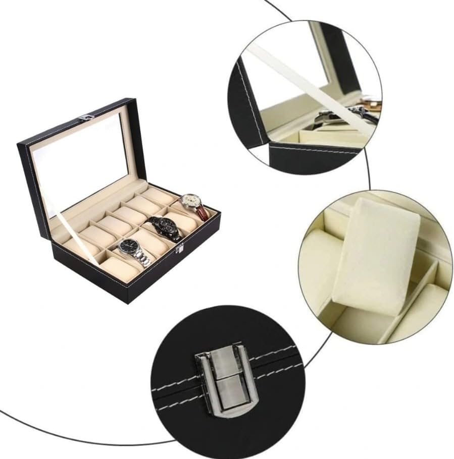 - نظّم منضدتك في لحظة — حيث يتيح لك صندوق تنظيم الساعات هذا ترتيب 10 ساعات أنيقة على وسائد محشوة ناعمة تحت غطاء زجاجي شفاف، مما يحافظ على كل ساعة من الغبار والخدوش، وجاهزة للارتداء في أي وقت.