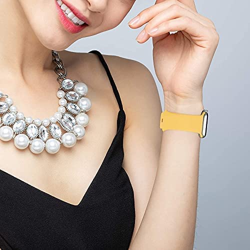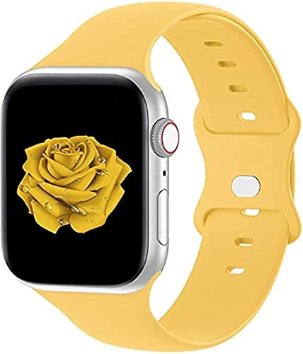 watch strap - سوار ساعة بديل سيليكون بتصميم رياضي بدبوس بقفل مزدوج قابل للتعديل مقاس 45 ملم لساعة اي وتش إصدار 7 45 ملم (أصفر)