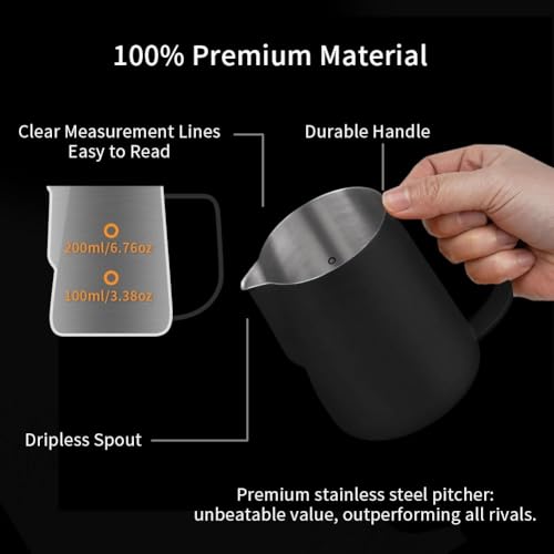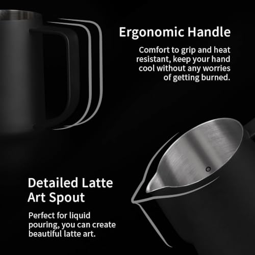 watchget - watchget Milk Frothing Pitcher 250ml/8oz Stainless Steel Espresso Steaming Pitcher Milk Coffee Cappuccino Latte Art Barista Steam Pitcher Milk Frothing Jug, Black