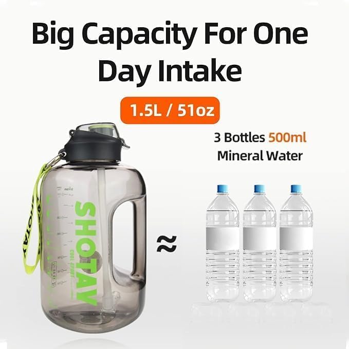 Generic - زجاجة مياه بسعة كبيرة 1.5 لتر قابلة لاعادة الاستخدام ومانعة للتسرب وخالية من البيسفينول ايه، زجاجة ترطيب لصالة الالعاب الرياضية والمدرسة