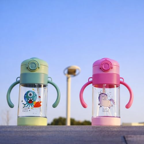Generic - Water Bottle 360ml Acrylic Bottle with Straw, Leakproof BPA-Free Lightweight Reusable for School, Sports & Travel (Green)