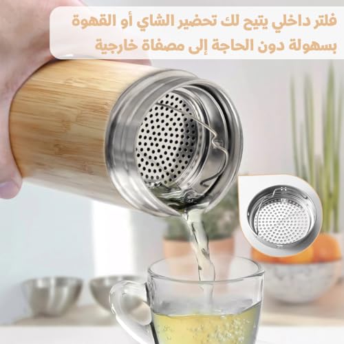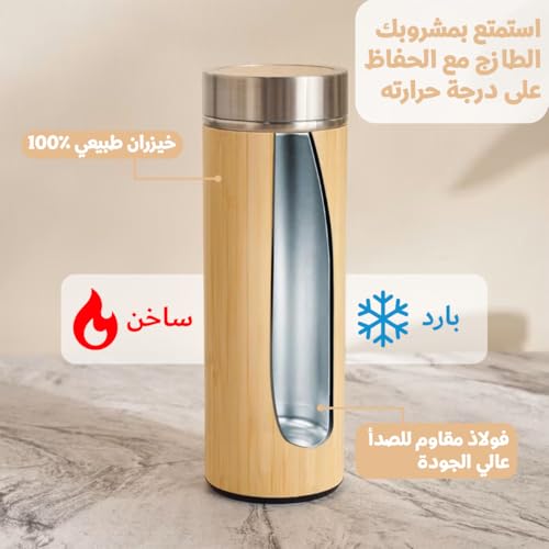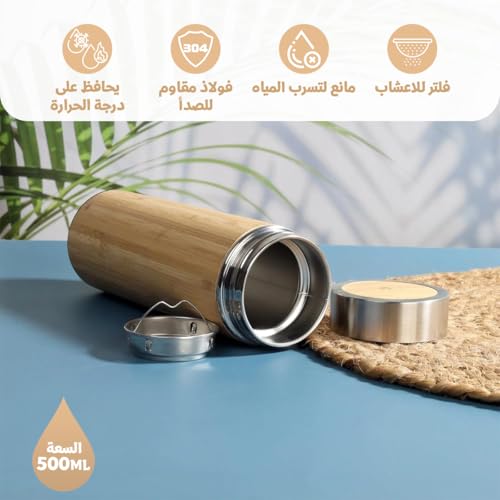 Generic - Water Bottle 500ml - Stainless Steel & Bamboo Vacuum Insulated Double Wall Leak Proof, Coffee Cup for Hot & Cold Drinks, BPA Free, Travel Mug for Outdoor & Indoor