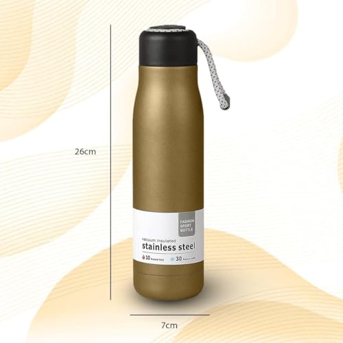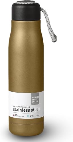 Generic - زجاجة مياه معزولة بتفريغ الهواء من الفولاذ المقاوم للصدأ، ترمس حراري بجدار مزدوج وغطاء مانع للتسرب خالي من مادة بيسفينول أ للمشروبات الساخنة والباردة، 500 ملليلتر، ذهبي