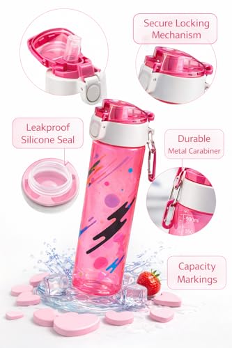 Generic - Water Bottle 650ml Leakproof BPA-Free Drinking Bottle Reusable for Gym, School, Outdoor and Daily Hydration (Pink)