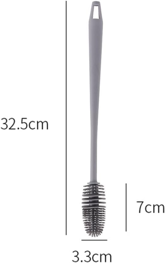 Generic - فرشاة تنظيف زجاجات المياه، ٣٢.٥ سم، مع مقبض طويل من السيليكون، رمادي، لتنظيف الأكواب والزجاجات الرياضية