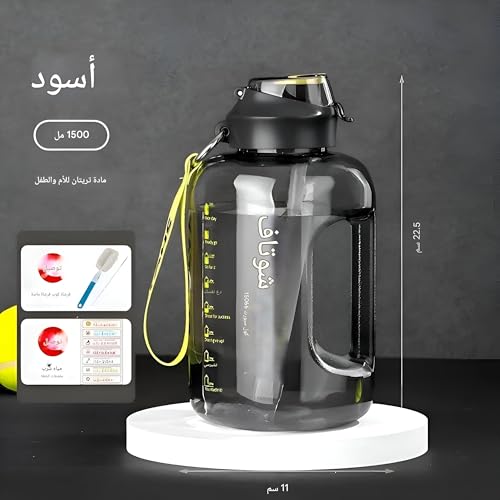 - With a generous 1500ml capacity, this stylish black bottle keeps you hydrated all day long, reducing the need for multiple refills and seamlessly blending function with modern design in any setting.