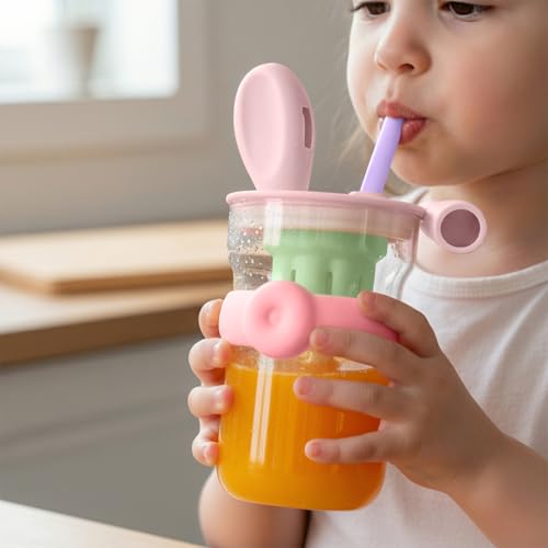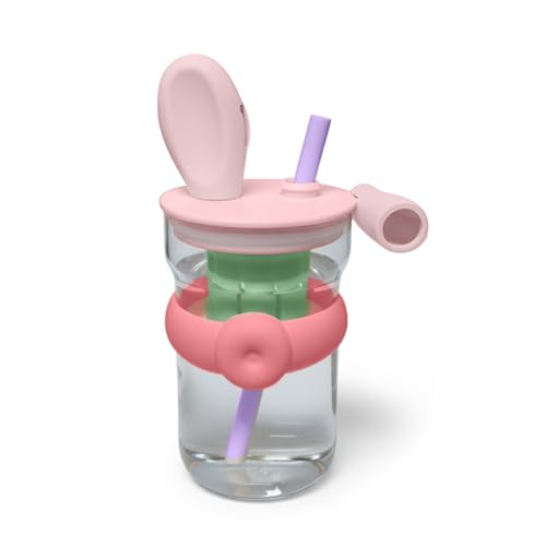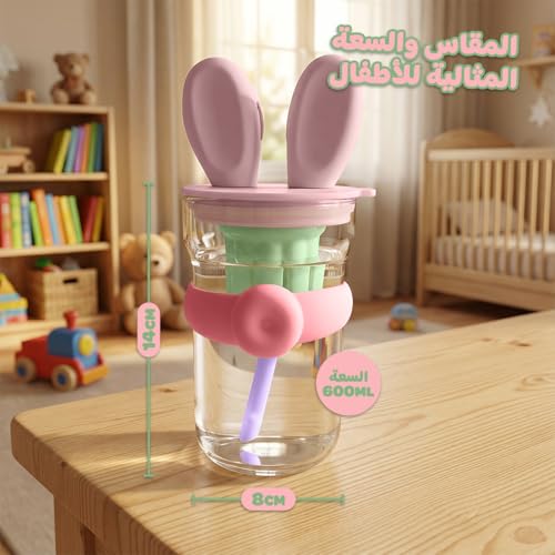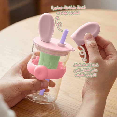 Generic - Water Bottle, Glass with Straw and Handle, 600 ml Strainer Cup, Leak-proof BPA-free Easy-grip Lid for Juice, Milk and Tea, for Indoor and Outdoor, GG-2519 (Pink, Green)