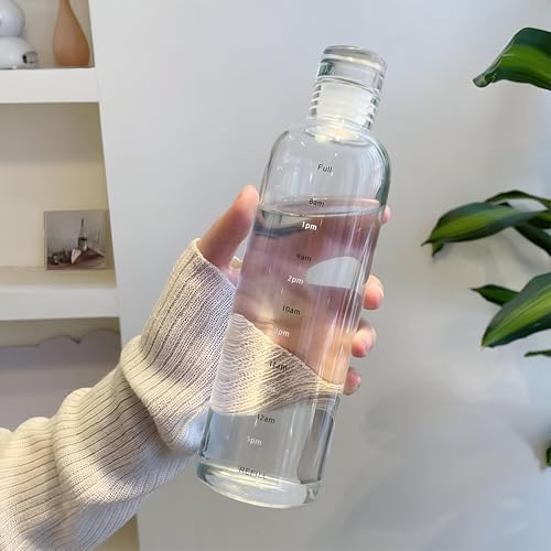Generic - Water Bottle - High Quality Clear Glass Large Capacity Thickened Time Leak-proof Design to Track Daily Water Intake for Milk, Juice, Water for Girls Kids Women School Travel 500ml