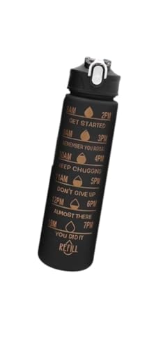 - زجاجة مياه زجاجة مياه رياضية تحفيزية وعلامات الوقت، زجاجة مشروبات تريتان خالية من BPA للبنات والاولاد واللياقة البدنية في الهواء الطلق وركوب الدراجات (اسود)