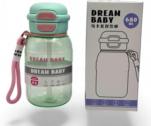 Generic - Water Bottle Two Openings with Straw, 680ml Clear Acrylic Sports Bottle, Leak Proof, Wide Mouth, for School & Sports & Work (Mint)