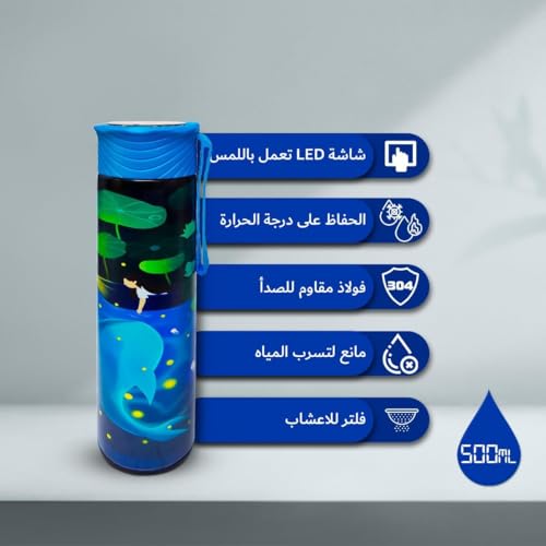 Generic - Water Bottle Vacuum Insulated 500ml Stainless Steel with Temperature Display Double Wall Leakproof Lid Carry Handle for Hot Cold Drinks Travel Sports Office School