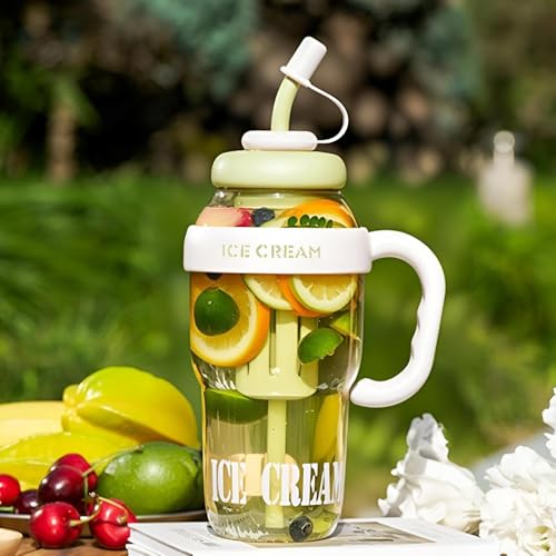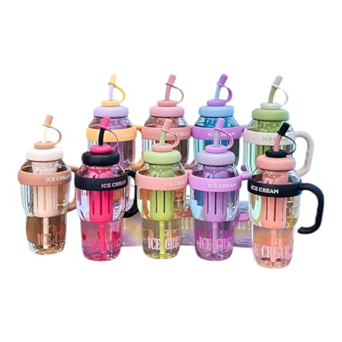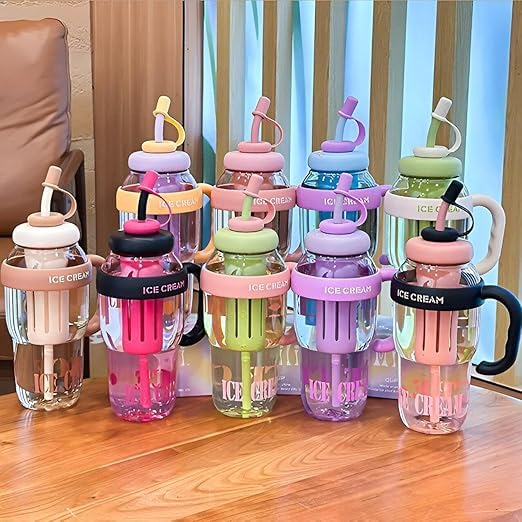 Generic - زجاجة مياه بمقبض وماصه قابله لاعادة الاستخدام للقهوه المثلجه والعصائر تصميم مقاوم للتسرب من اجل الراحه اثناء التنقل