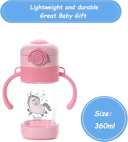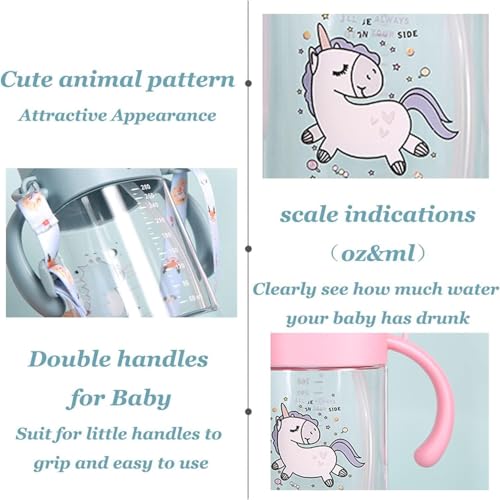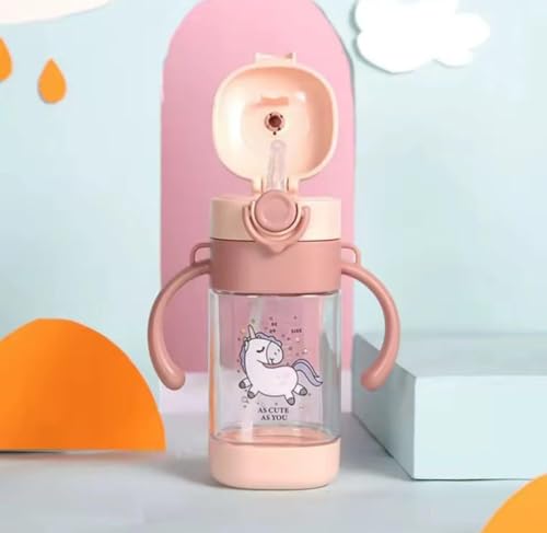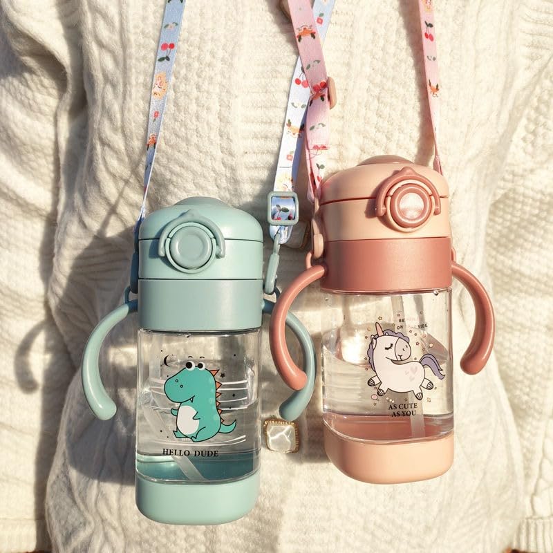 Generic - زجاجة مياه مع شفاطة اكريليك بتصميم كرتوني مقاومة للتسرب مزودة بمقبض وحزام خالية من مادة بيسفينول أ مناسبة للاستخدام اليومي للمدرسة والرحلات، لون وردي غامق، سعة 360 مل