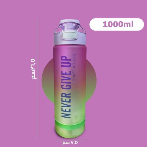 Generic - زجاجة مياه بغطاء بشفاطة سعة 1 لتر خالية من مادة بيسفينول أ ومانعة للتسرب وقابلة لإعادة الاستخدام ومتينة للجيم والسفر والمدرسة والمنزل والأماكن الخارجية مع مقبض للحمل (لون وردي واخضر)