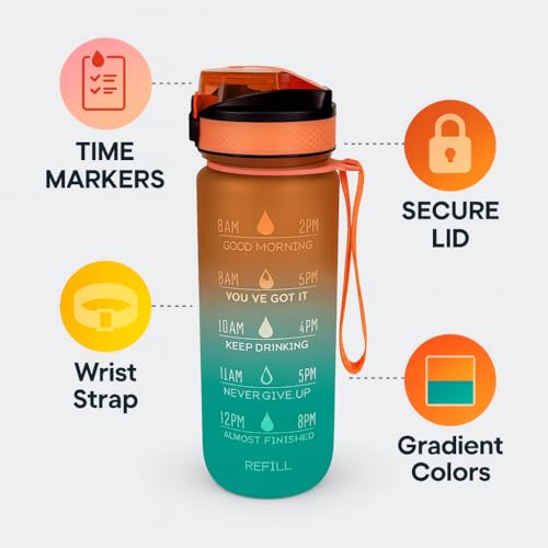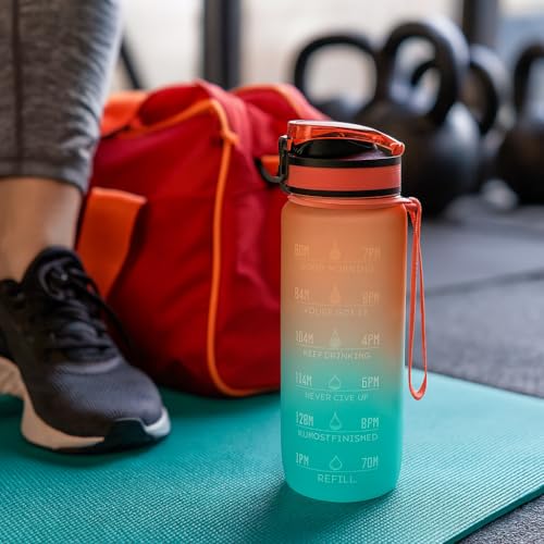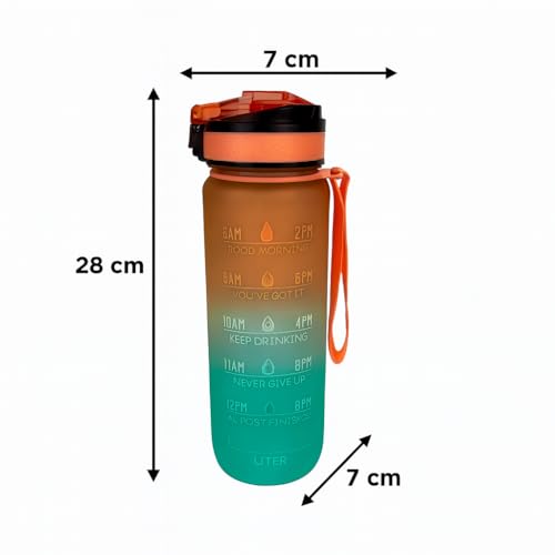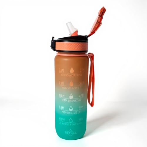 Generic - زجاجة مياه رياضية تحفيزية مع علامة زمنية وسوار من البلاستيك المانع للتسرب وخالية من مادة بيسفينول أ، متدرجة 1 لتر (برتقالي)
