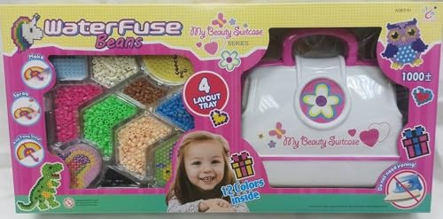 Generic - Water Fuse Beads My Beauty Suitcase Craft Set, 1000+ Beads, 12 Colours, 4 Layout Tray