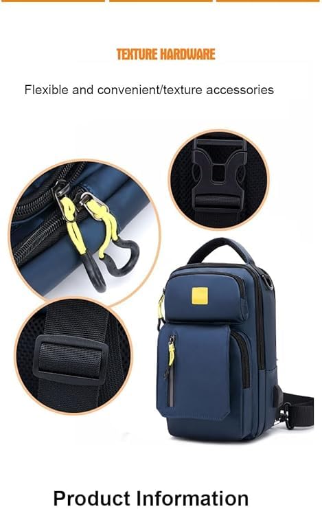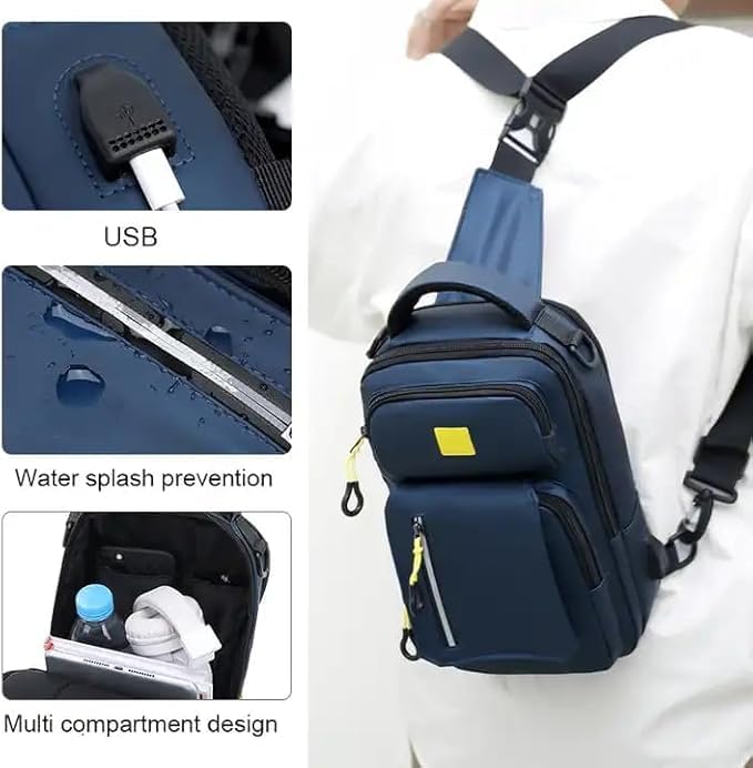 عام - شنطة ظهر كروس مقاومة للماء مع منفذ USB وتصميم حمل ثلاثي قابل للتعديل، لون ازرق داكن، مقاس M