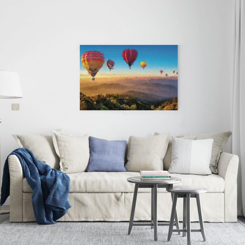 Home Gallery - لوحة فنية جدارية قماشية بإطار بألوان مائية بتصميم بالونات الهواء الساخن فوق الحقول، 1.2 متر × 80 سم