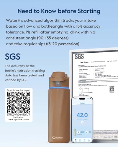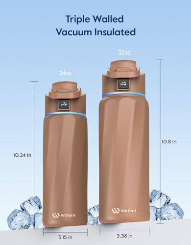 WATERH - زجاجة مياه ذكية من ووتر اتش بوست مع تذكير بشرب الماء، زجاجة مياه معزولة بتفريغ الهواء من الستانلس ستيل خالية من البيسفينول ايه، زجاجة تتبع المياه بفتحة واسعة مع تطبيق، هدية مثالية
