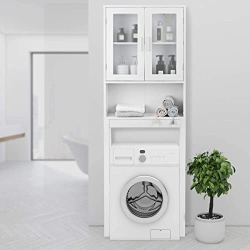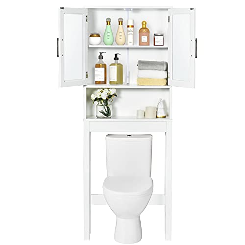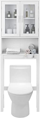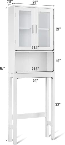 - 【Upgrade Size & Space-saving】This over toilet storage cabinet is designed to help you take advantage of the large wall space over the toilet or washing machine. It is a necessary item for small bathrooms/apartments without taking up much floor space. It is a super practical and space-efficient solution to your bathroom storage. Moreover, the bottom shelf is 32 inch high from the ground so that it is capable of fitting over most standard toilets or washing machine.