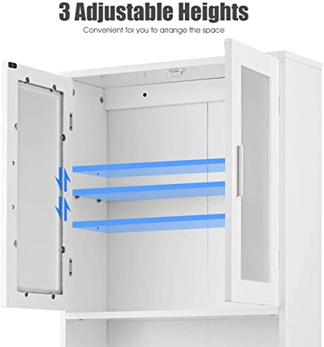 WATERJOY - WATERJOY Over The Toilet Storage Cabinet, Bathroom Cabinet Organizer with 2 Moru Tempered Glass Door, Space-Saving Toilet Shelf, White