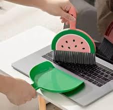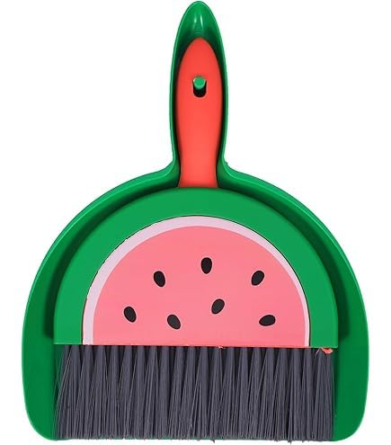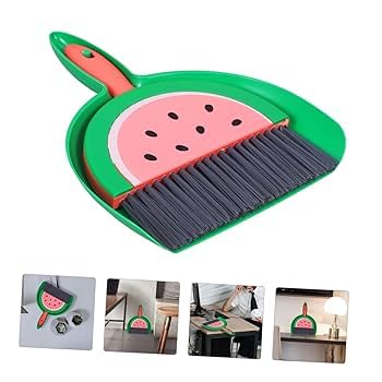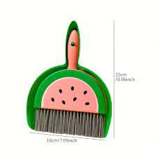 - تصميم مبتكر: مجموعة تنظيف بتصميم البطيخ الجذاب، تتكون من مكنسة ومجرفة بألوان أخضر ووردي زاهية