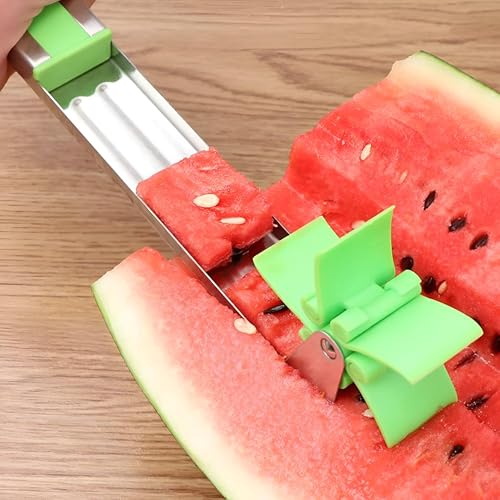 - This innovative watermelon cutting tool features a unique mechanical cutting blade, eliminating the need for hand slicing. Just push the tool into the watermelon and the perfect size blocks will automatically appear.