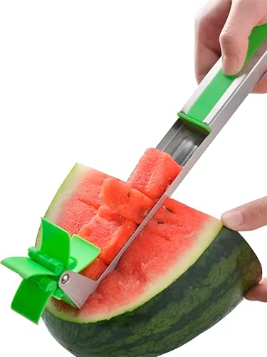 Generic - قطاعة خضروات من الفولاذ مقاوم للصدأ على شكل طاحونة هوائية لتقطيع البطيخ وتحضير الفواكه والسلطة سريعًا، لون أخضر، قطعة واحدة