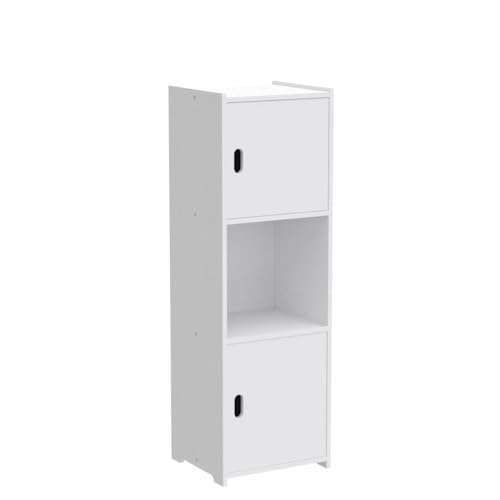 OUDIE - خزانة حمام مقاومة للماء، وحدة تخزين حمام قائم على الارض، خزائن اثاث الحمام متعددة الاغراض بباب ورف، مناسبة للحمام وغرفة المعيشة والممر وغرفة النوم، ابيض