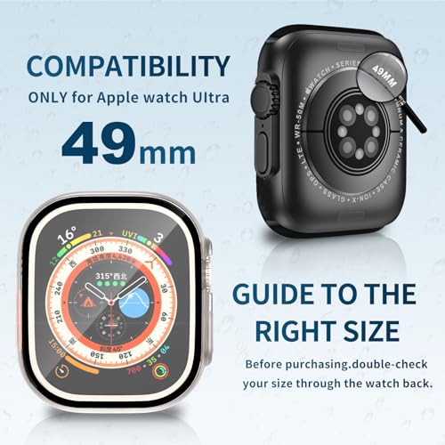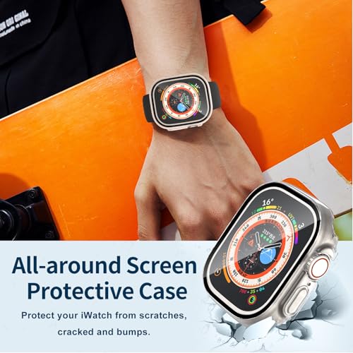 - 【Compatible Model】Tempered Glass Screen Protector Case for Apple Watch Ultra 2/1 49mm.