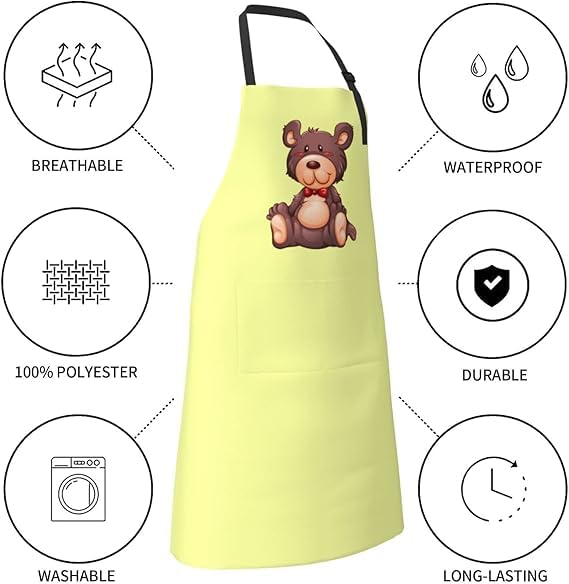 Generic - Waterproof Cute Bear Kitchen Apron with Side Drying Towel, Large Pocket, Adjustable Cotton Linen Fabric for Cooking, Baking, and BBQ, Fun Practical Kitchen Gear