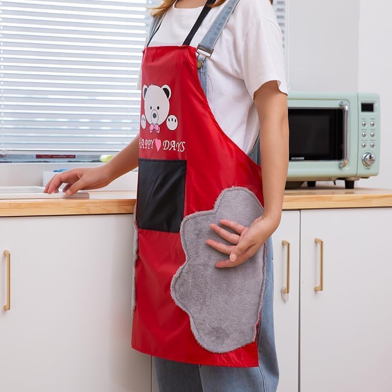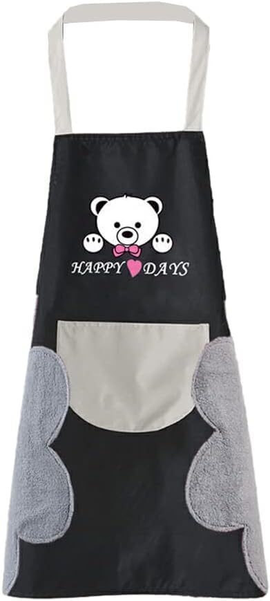 Generic - Waterproof Kitchen Apron with Integrated Side Towel and Adjustable Strap, High-Quality Cotton Linen Cooking Apron with Large Front Pocket and Cute Bear Pattern for Daily Use