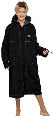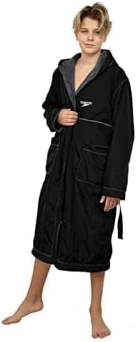 Generic - روب حمام سباحة وتربروف رجالي أسود بكمام طويلة بسحاب أمامي وخامة ماصة للمياه – للاستخدام بعد السباحة أو الشاطئ