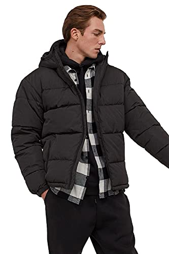 Generic - Waterproof Men's Hooded Puffer Coat Winter Down Jacket, Black, with Hood and Zipper