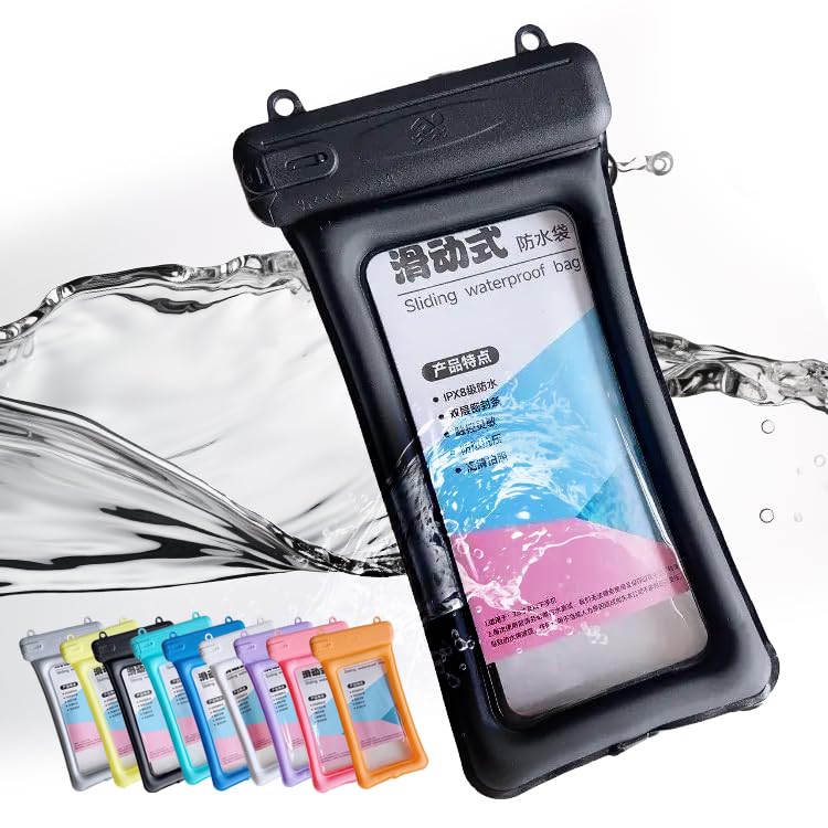 Generic - Waterproof Phone Pouch Case – Universal Sliding Lock, Touchscreen-Friendly (Black)