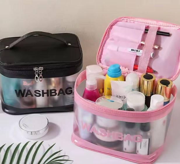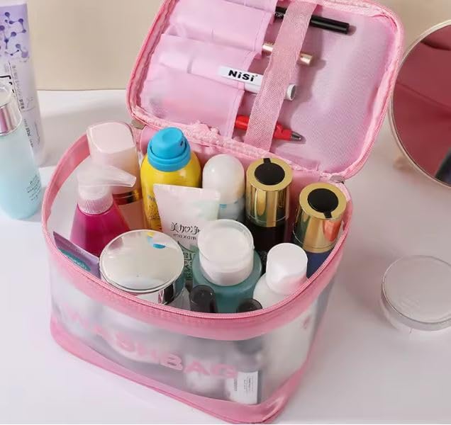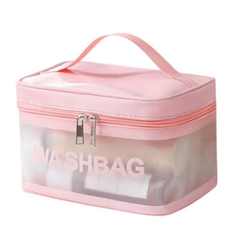 Spaceshoop - Waterproof PVC Makeup Bag, Portable Cosmetic Bag, Large Capacity, Travel Toiletry Organizer, Storage Bag (pink)