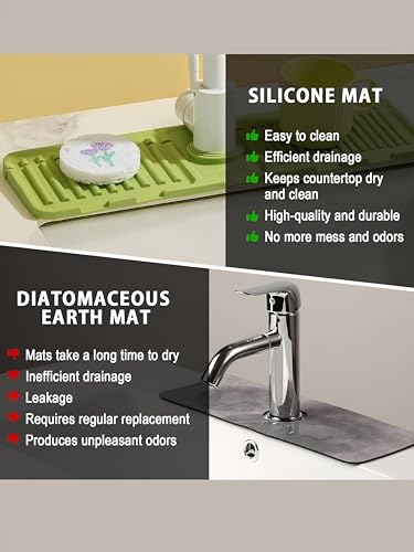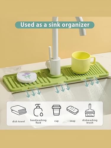 Generic - Waterproof Sink Barrier - Green Silicone Pad, Prevents Splashing, Holds Cleaning Tools, Keeps Surface Dry, Designed for Kitchen and Bathroom Uses