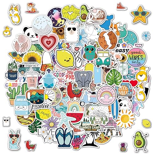 - Waterproof Sticker Pack -- The waterproof stickers are made of vinyl material, waterproof, dust-proof, sun proof and UV resistant, never faded out. No worries about losing their viscosity due to moisture when taking them to swimming pool, beach, camping or other outdoor places. These stickers are environmentally friendly and reusable, safe and non-toxic