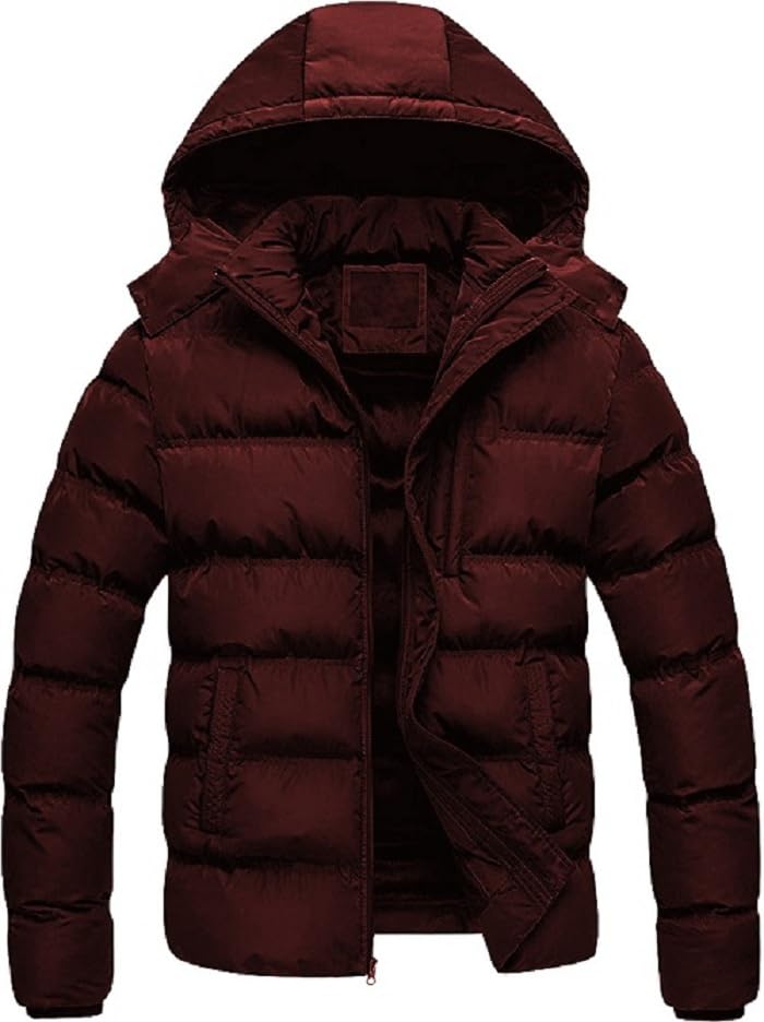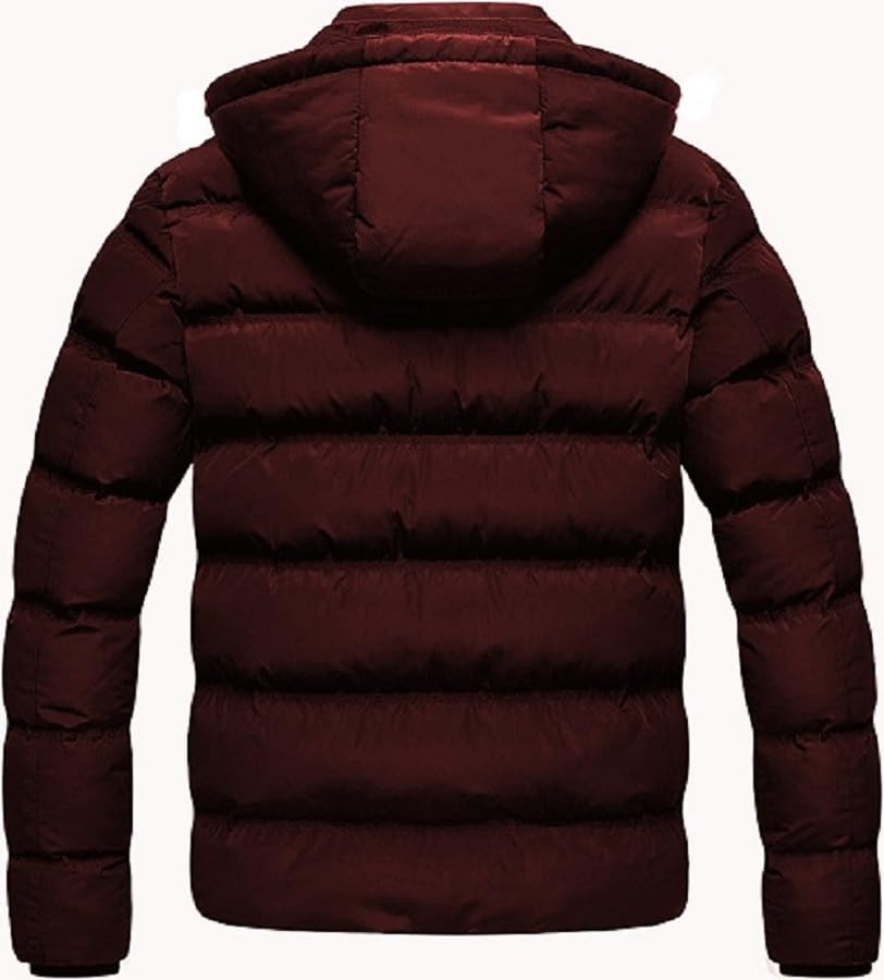 Generic - Waterproof Winter Hooded Puffer Jacket, Burgundy, Quilted Down Insulation, Zip-Up Closure, Casual Outerwear
