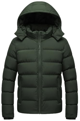 Generic - جاكيت شتوي منتفخ بغطاء راس مقاوم للماء، اخضر زيتوني، بديل مبطن من الاسفل، اغلاق بسحاب كامل، ملابس خارجية مبطنة دافئة