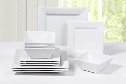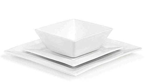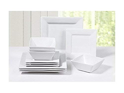 Waterside Fine China - 12 Piece White Square Porcelain Dinner Set
