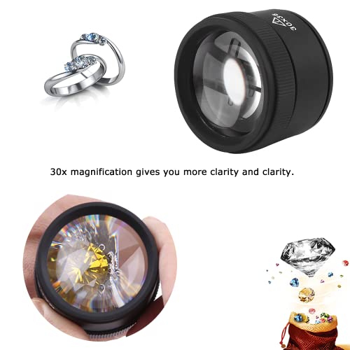 - 【30X Magnification】The magnifying glass with 30x magnification can give you a clearer view of tiny objects, allowing you to see the details of objects at a glance.