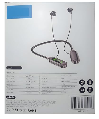 Generic - سماعة بلوتوث بتصميم شريط حول الرقبة آمن لتوفير صوت رائع، بشاشة مدمجة لعرض الحالة بسهولة، طلاء مقاوم للتعرق، صوت متوازن، اقتران سريع عبر الأجهزة من ويف لينك