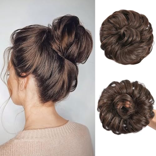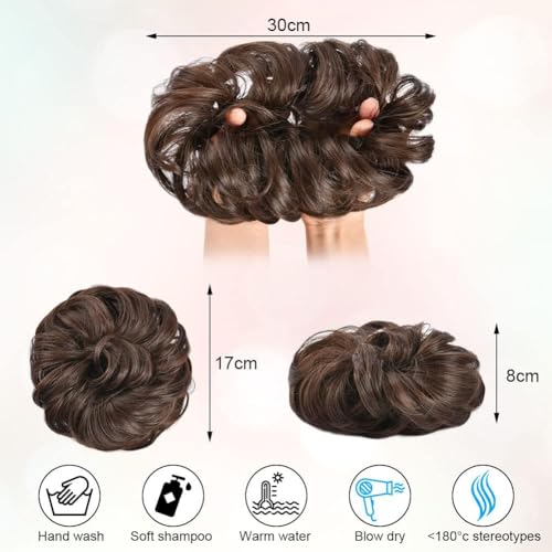 Generic - ربطة كعكة شعر مموجة وصلات شعر مستعارة بتصميم كعكة للنساء والبنات شعر على شكل كعكة دونات، قطعة شعر مستعار للنساء اللون بنى