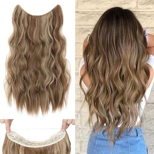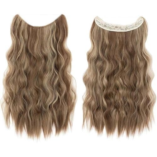 Generic - Wavy Weft Hair Extensions Light Brown Synthetic Hair with Platinum Weft Easy Installation Transparent Thread